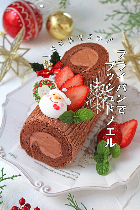 フライパンでしっとりふわふわ♪クリスマスブッシュドノエル♪